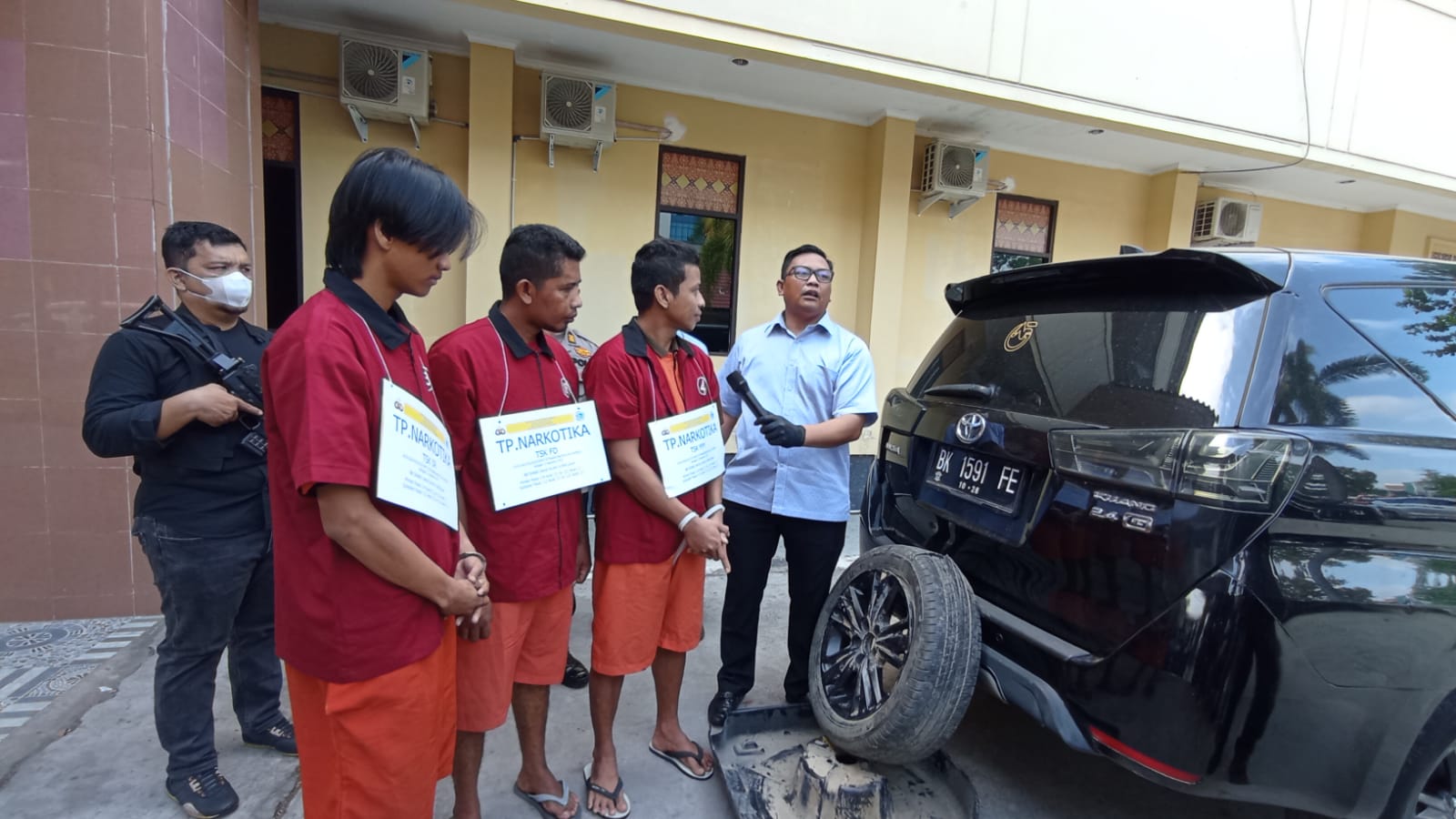 Ketiga tersangka ditangkap dalam mobil minibus Toyota Kijang Inova warna hitam dengan nomor polisi BK 1591 FE. Mobil tersebut digunakan membawa sabu yang disimpan didalam ban serep.