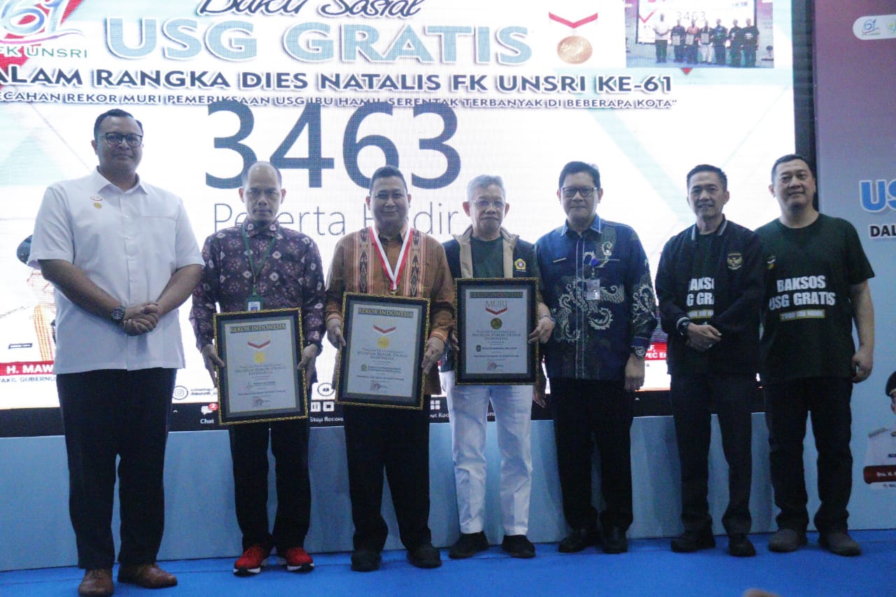 KORDANEWS-Ratu Dewa mendukung penuh kegiatan Dies Natalis Fakultas Kedokteran Universitas Sriwijaya ke- 61 yang berhasil memecahkan rekor MURI pelaksanaan USG gratis serentak di 23 provinsi dengan jumlah peserta terbanyak Se Indonesia mencapai 3500 lebih.