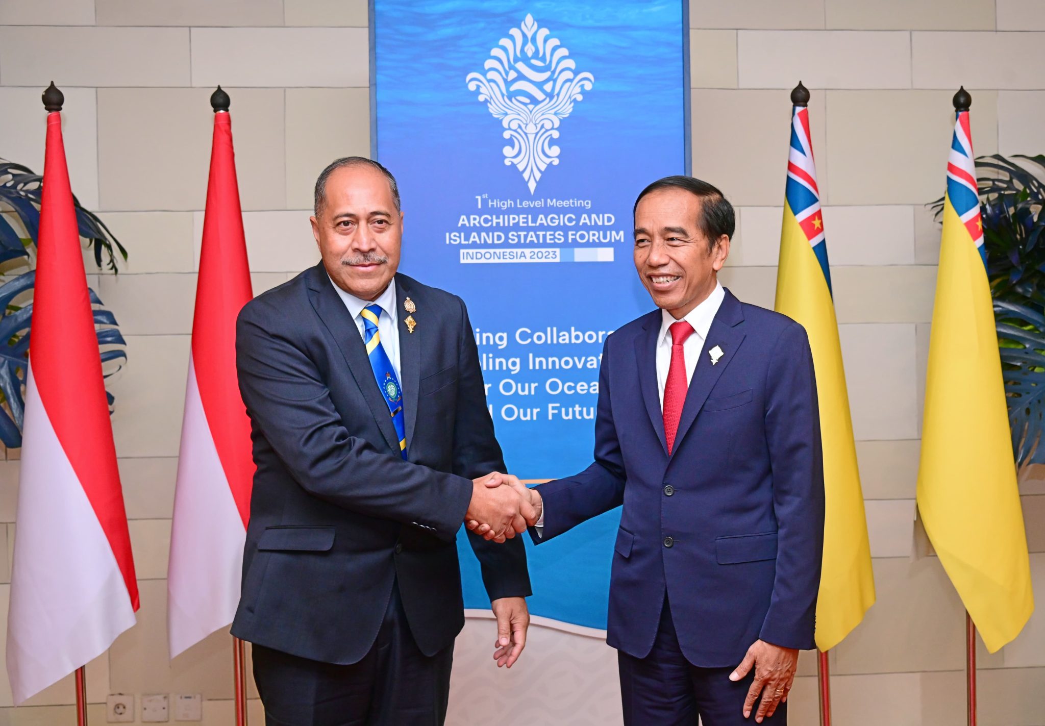 KORDANEWS – Presiden RI Joko Widodo (Jokowi) menggelar pertemuan bilateral dengan Premier Niue, Dalton Emani Makamau Tagelagi di Bali Nusa Dua Convention Center (BNDCC), Kabupaten Badung, Provinsi Bali, pada Rabu (11/10/2023). Pertemuan bilateral tersebut digelar di sela-sela Konferensi Tingkat Tinggi (KTT) Forum Negara-Negara Kepulauan dan Negara Pulau (Archipelagic and Island States Forum).