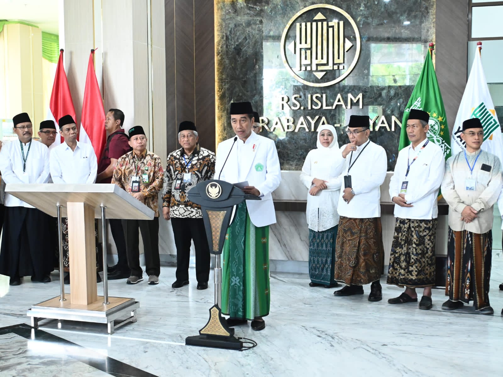 “Alhamdulillah hari ini akan kita resmikan dua rumah sakit TNI yaitu Rumah Sakit Tk.III Brawijaya dan Rumah Sakit Angkatan Laut Tk.II dr. Soekantyo Jahja yang sudah siap untuk dimanfaatkan,” ucap Presiden dalam sambutannya di Rumah Sakit Tk.III Brawijaya, Kota Surabaya, Provinsi Jawa Timur.