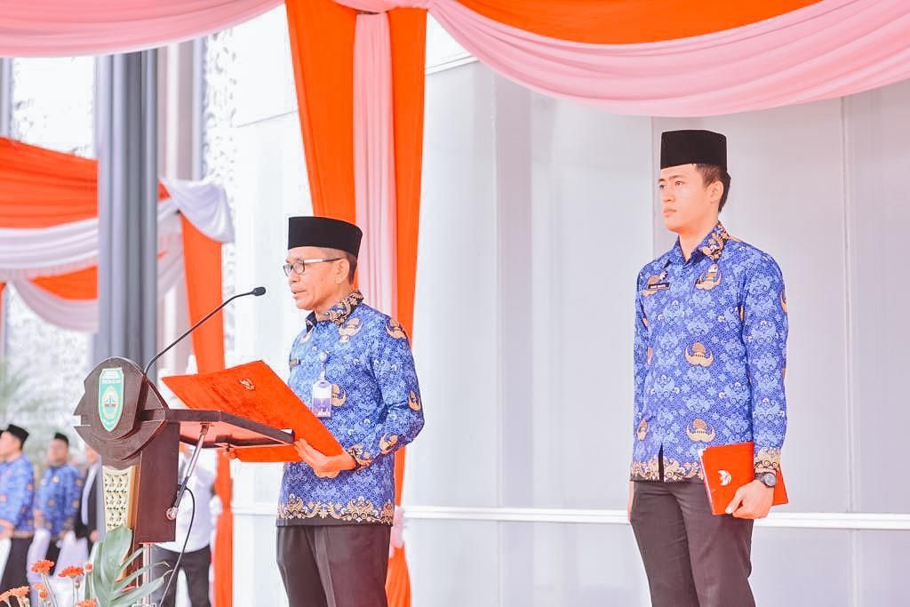 kordanews – Upacara peringatan hari ulang tahun (HUT) ke-52 Korps Pegawai Republik Indonesia (Korpri) di lingkungan Pemprov Sumsel dipusatkan di halaman kantor Gubernur Sumsel, Rabu (29/11/2023). Bertindak sebagai Inspektur Upacara (Irup) kali ini adalah Sekretaris Daerah (Sekda) Provinsi Sumsel, Ir. S.A. Supriono.