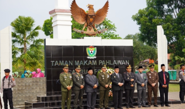 Kordanews – Penjabat (Pj) Bupati Muara Enim H Ahmad Rizali memimpin Upacara Bendera Peringatan Hari Pahlawan ke-78 Tahun 2023 yang mengusung tema ‘Semangat Pahlawan untuk Masa Depan Bangsa dalam Memerangi Kemiskinan dan Kebodohan’ di Taman Makam Pahlawan (TMP) Ksatria Pertiwi Muara Enim, Jum’at (10/11).
