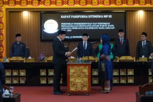 KORDANEWS-Paripurna Istimewa Masa Persidangan (MP)-III yang beragenda Peresmian Pemberhentian dan Peresmian Pengangkatan Pengganti Antar Waktu (PAW) anggota DPRD Demokrat Kota Palembang Masa Jabatan 2019-2024 berlangsung di Gedung Rapat Paripurna DPRD Kota Palembang.