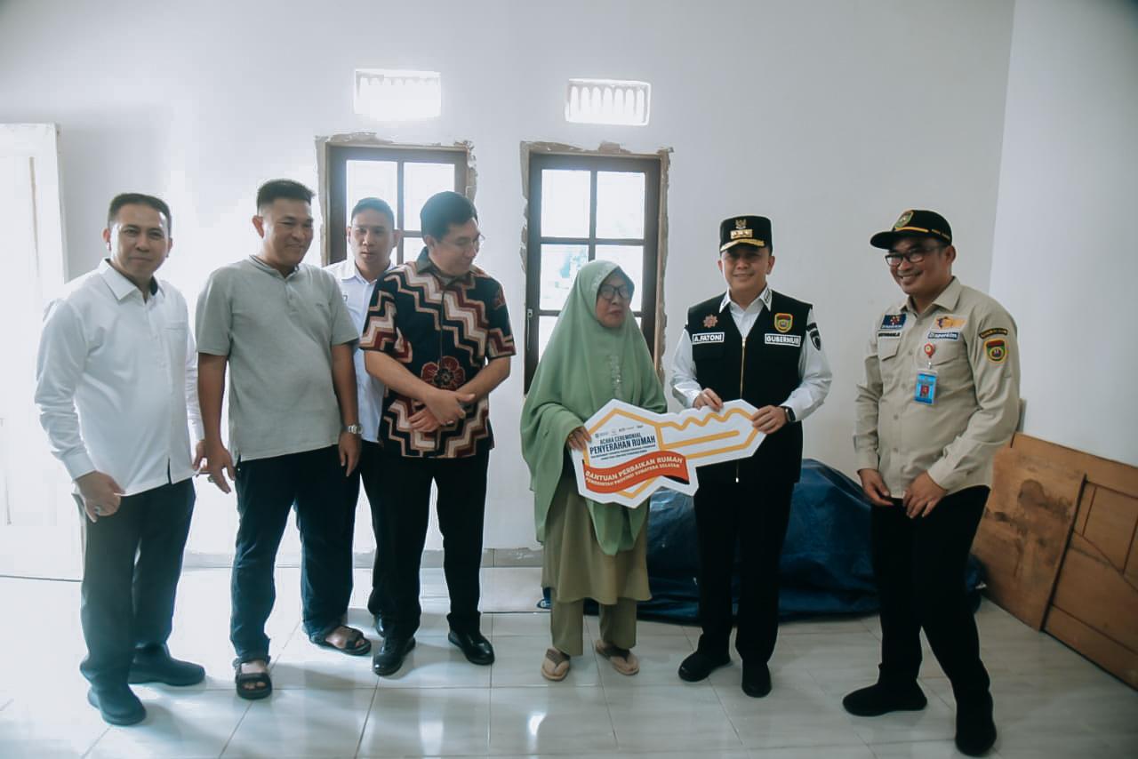 Kordanews – Penjabat (Pj) Gubernur Sumatera Selatan (Sumsel) Agus Fatoni menyerahkan bantuan rumah kepada masyarakat terdampak program pemugaran/peremajaan Rumah Tidak Layah Huni (RTLH). Fatoni secara simbolis menyerahkan kunci kepada masyarakat terdampak di Lorong Lama, Kelurahan Bagus Kuning Plaju, Palembang, Sumatera Selatan, Minggu (3/12/2023).
