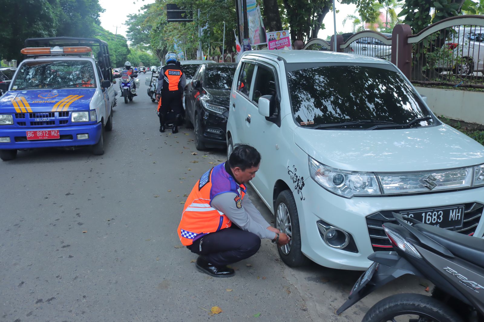 “Hampir tiap hari kendaraan parkir di seputaran RSMH, selain mobil 15 Kendaraan roda 2 ditindak” tutur Julyanzah.