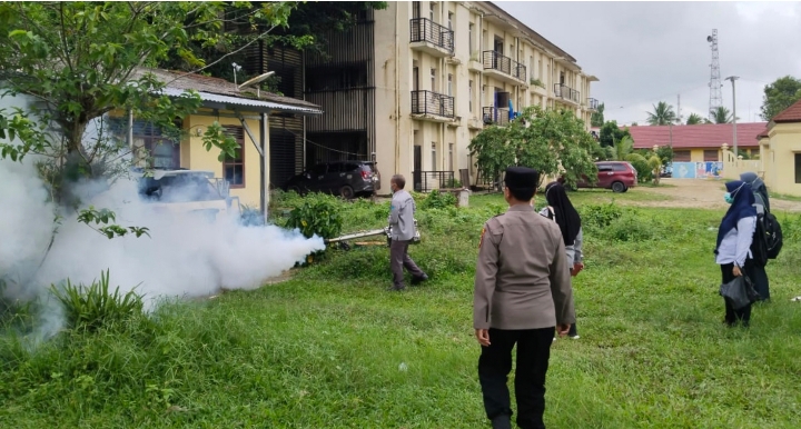 Kegiatan fogging dilaksanakan di kantor dan lingkungan Polsek Indralaya guna mencegah dan mengatasi penyakit DBD.