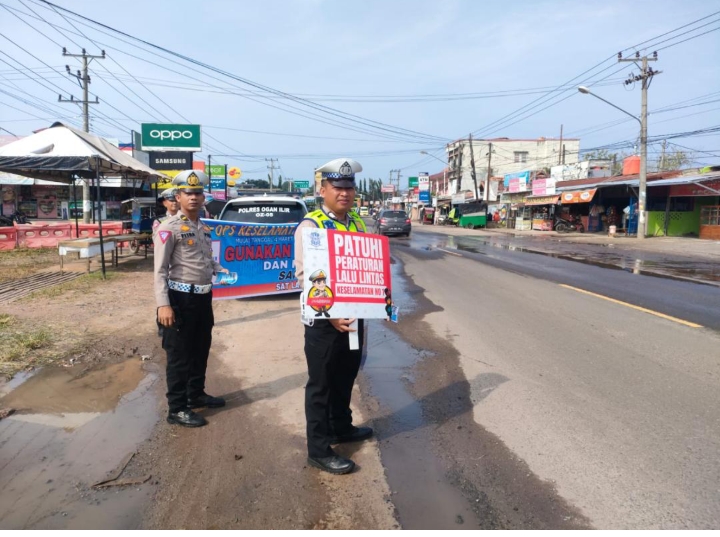 Bentuk kegiatannya, yakni memberikan Himbauan Keselamatan Berlalu Lintas ini disampaikan oleh Personil Satlantas Polres Ogan Ilir dalam Operasi Keselamatan Musi 2024 yang dilaksanakan hari ke-sembilan yang berlokasi di Jalan Lintas Indralaya-Prabumulih tepatnya di depan Simpang PGRI Indralaya Utara Kabupaten Ogan Ilir sekitar jam 09.00 Wib.