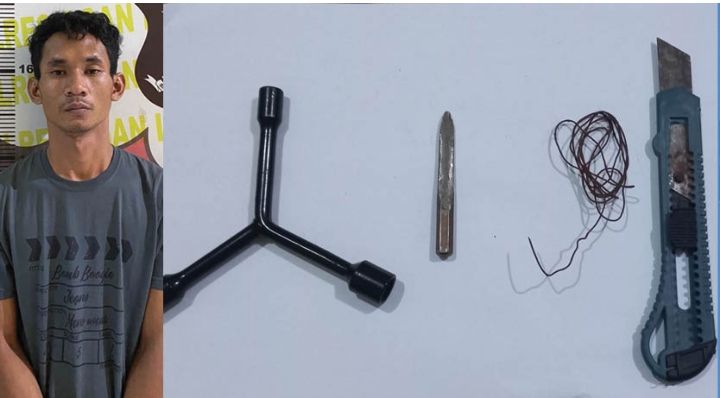 Ternyata pria ini ingin mencuri sepada motor yang pemiliknya lengah. Belum berhasil mendapatkan sasarannya, pria ini diamankan Polisi.