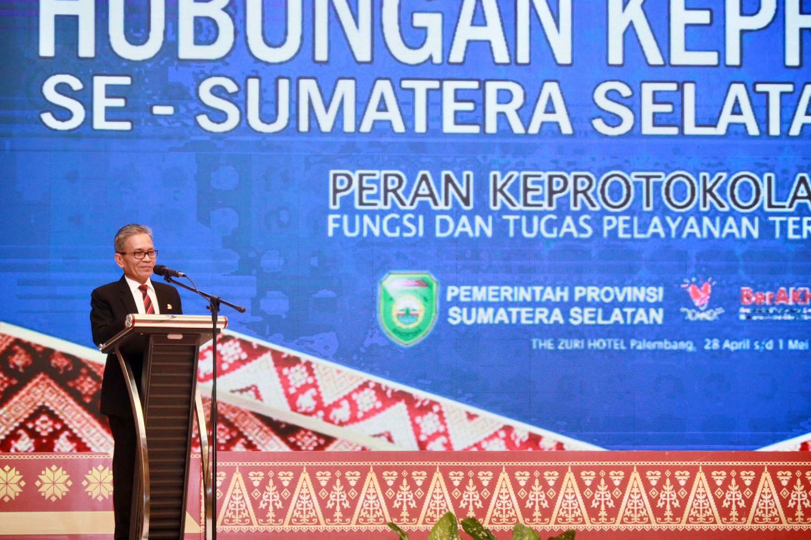 Kordanews – Penjabat (Pj) Gubernur Sumatera Selatan (Sumsel) Agus Fatoni diwakili Sekretaris Daerah (Sekda) Provinsi Sumsel SA Supriono membuka Bimbingan Teknis (Bimtek) Hubungan Keprotokolan se-Sumsel Tahun 2024. Kegiatan ini berlangsung di The Zuri Hotel, Palembang, Sumatera Selatan, Senin (29/4/2024).