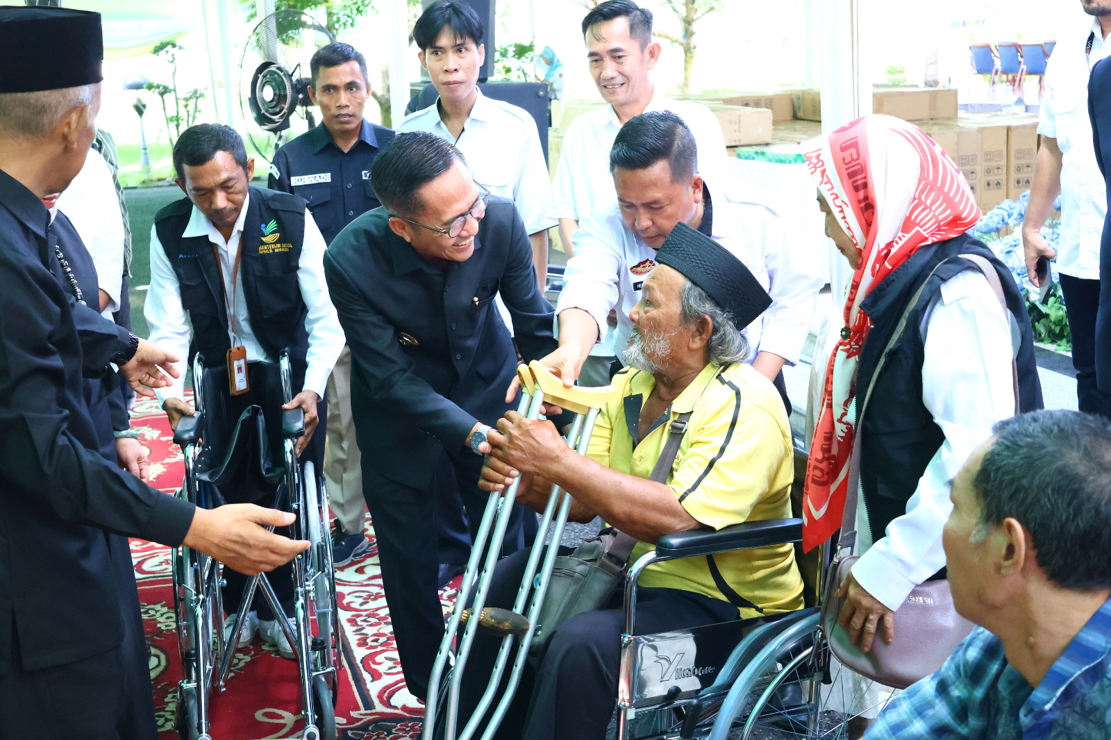 KORDANEWS-Dalam memperingati hari jadi Kota Palembang ke-1341 para penyandang disabilitas mendapatkan kebahagiaan dari Ratu Dewa PJ Walikota Palembang bantuan 150 alat bantu yang terdiri dari alat bantu pendengaran serta kursi roda.