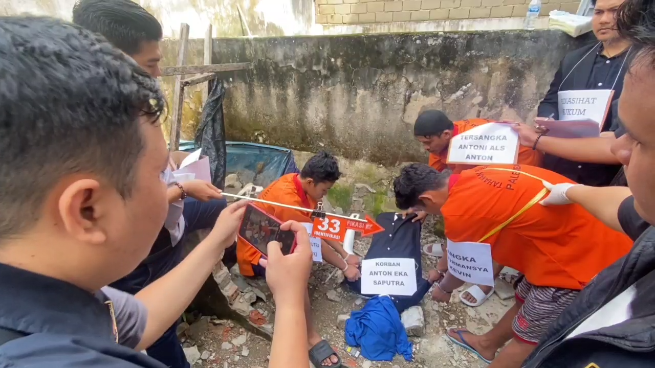Kordanews – Kasus pembunuhan terhadap karyawan koprasi Anton Eka Saputra (25) jasadnya di kubur dengan cara di cor, dilakukan rekontruksi oleh Polisi. Sebanyak 45 adegan di perankan oleh tiga orang tersangka.