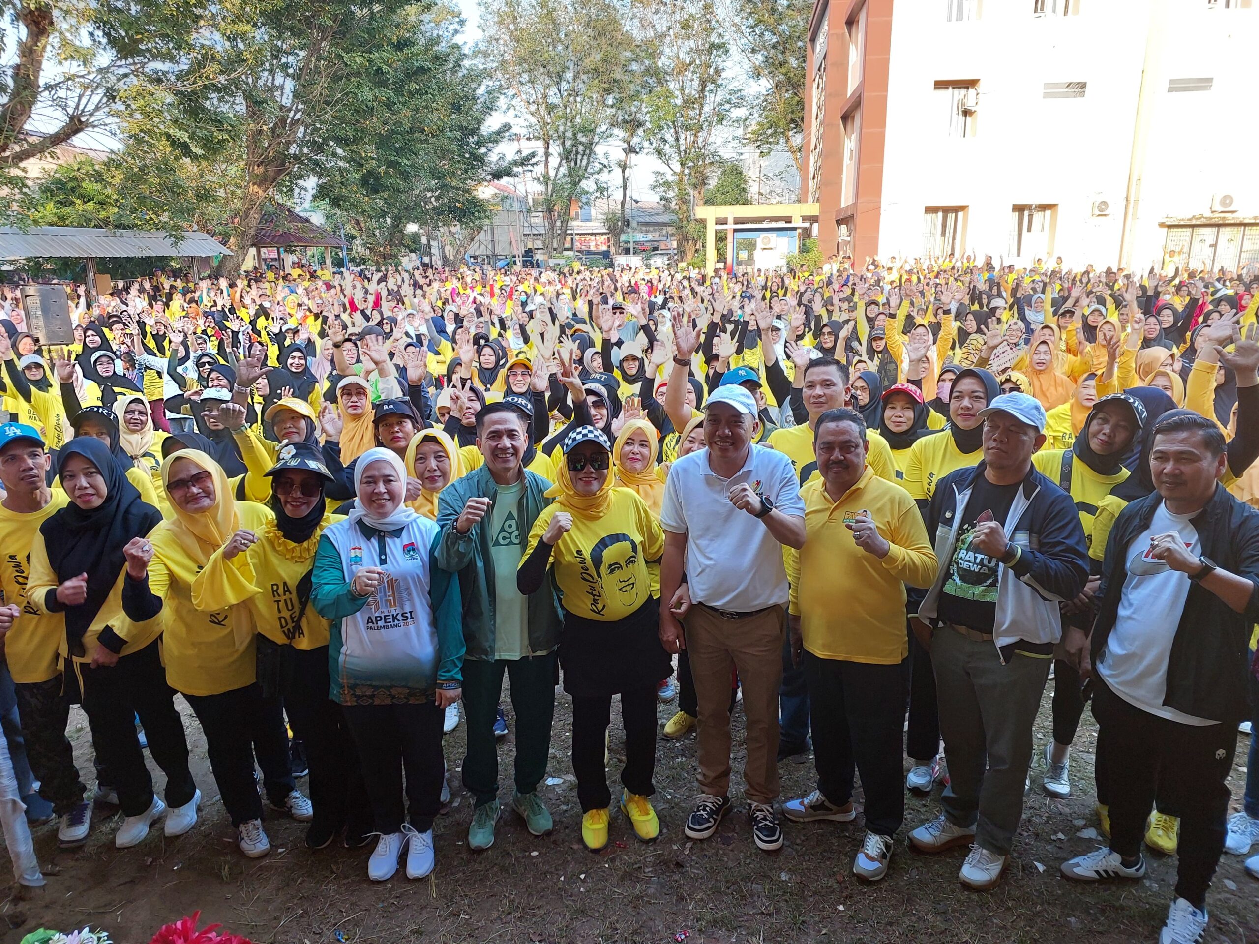 KORDANEWS-Ribuan emak-emak di kawasan Sako membanjiri halaman parkir Kecamatan Sako untuk ikut senam bersama Ratu Dewa Sekertaris Daerah (Sekda) Kota Palembang.