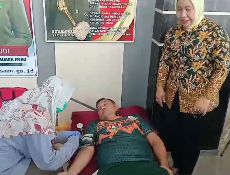 KORDANEWS – Ikut memenuhi kebutuhan darah di Kabupaten Muara Enim, Kejaksaan Negeri Muara Enim lakukan Bhakti Donor Darah. Donor Darah ini juga rangkaian Hari Bhakti Adhyaksa ke 64 yang di ikuti dari unsur masyarakat, TNI, Polri dan jajaran Kejaksaan.