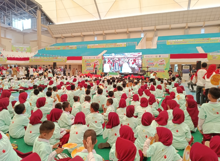 Ratusan anak-anak sekolah SD, guru serta orang tua mengikuti launching peluncuran program Genius 2024 tersebut.