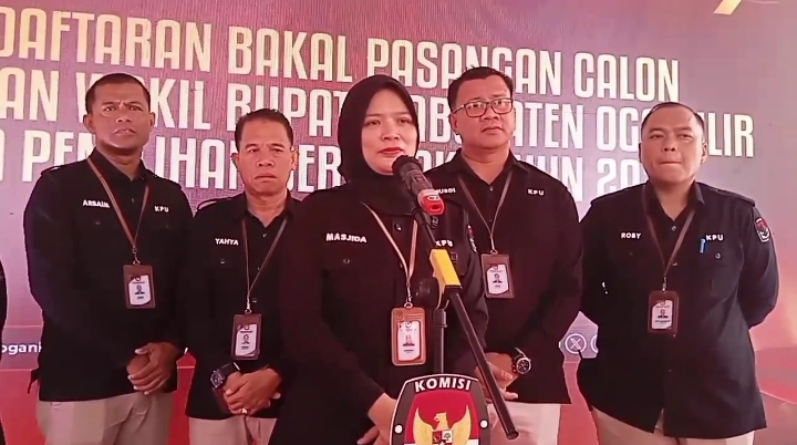 Perpanjangan waktu pendaftaran ini disampaikan oleh Ketua KPU Ogan Ilir Masjidah SHi MH, didampingi empat komisioner KPU lainnya, yakni Arbain SPdI, Robby Ardiansyah SH.