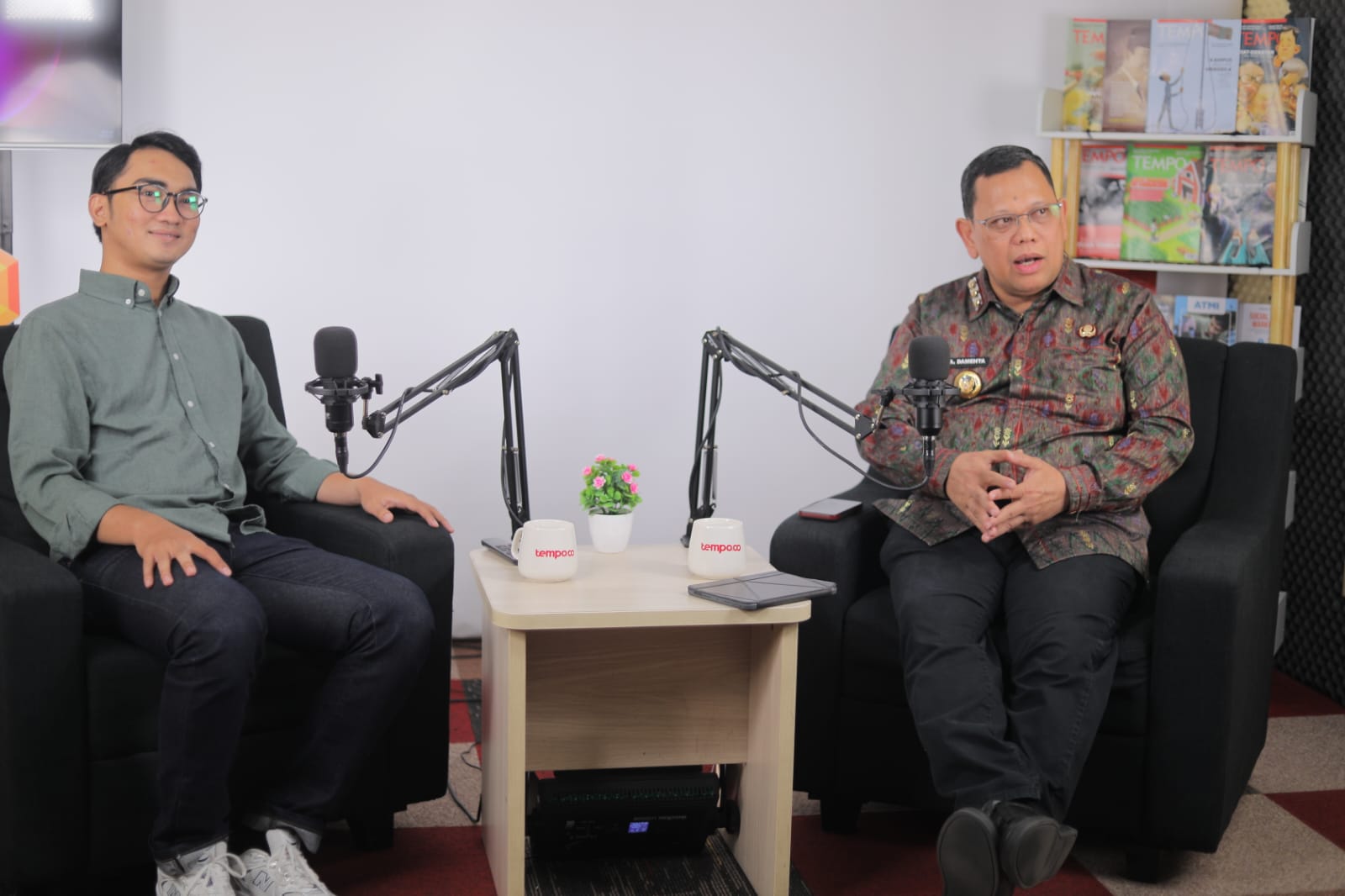 KORDANEW-Ucok Abdul Rauf Dementa selaku PJ Walikota Palembang menjadi narasumber program Tempo Media Grup, Teras Negeri. Tangkapan wawancara ekslusif dalam ruangan berukuran 6 x 6 m itu akan tayangkan di Youtube dilakukan di studio Tempo Jakarta, Kamis (10/10/2024) pagi.