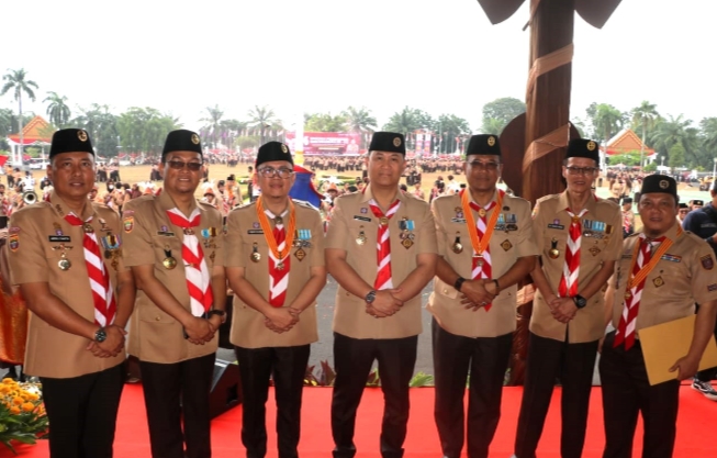 kORDANEWS – Pj. Bupati Muara Enim, H. Henky Putrawan, S.Pt., M.Si., M.M., mengajak anggota Pramuka untuk mendukung pembangunan daerah. Hal ini disampaikannya saat menghadiri upacara Peringatan Hari Pramuka ke-63 tingkat Sumatera Selatan di Halaman Griya Agung, Palembang, pada Senin (19/08). Upacara tersebut dipimpin oleh Pj. Gubernur Sumatera Selatan, Elen Setiadi, S.H., M.S.E., dan dihadiri oleh para Bupati dan Walikota se-Sumatera Selatan, dengan mengusung tema “Pramuka Berjiwa Pancasila, Menjaga NKRI”.