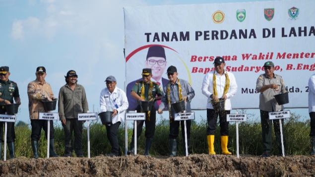 Bersama Wamentan RI, Pj. Bupati Panen dan Tanam Perdana Padi di Muara Belida