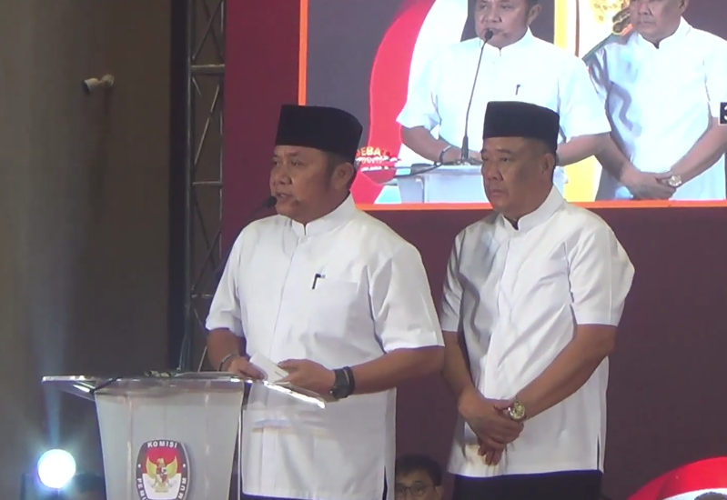 KORDANEWS – Didampingi Cawagubnya, Cik Ujang, Herman Deru menjelaskan Visi Paslon satu yakni Sumsel Maju Terus Untuk Semua, yang akan di jabarkan dalam tujuh Misi. Hal ini disampaikan dalam Debat Pertama Pilgub Sumsel di Novotel Palembang.