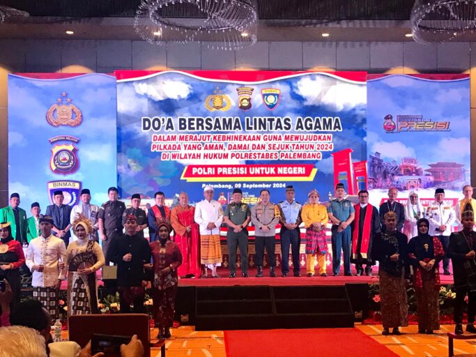 KORDANEWS — Badan Pengawas Pemilihan Umum (Bawaslu) Kota Palembang melalui Plh. Ketua Bawaslu Kota Palembang Khairil Anwar Simatupang Hadiri Doa bersama Lintas Agama yang digelar oleh Polrestabes Palembang di Gand Ballrom Hotel Novotel Palembang. Senin (09/09/2024)