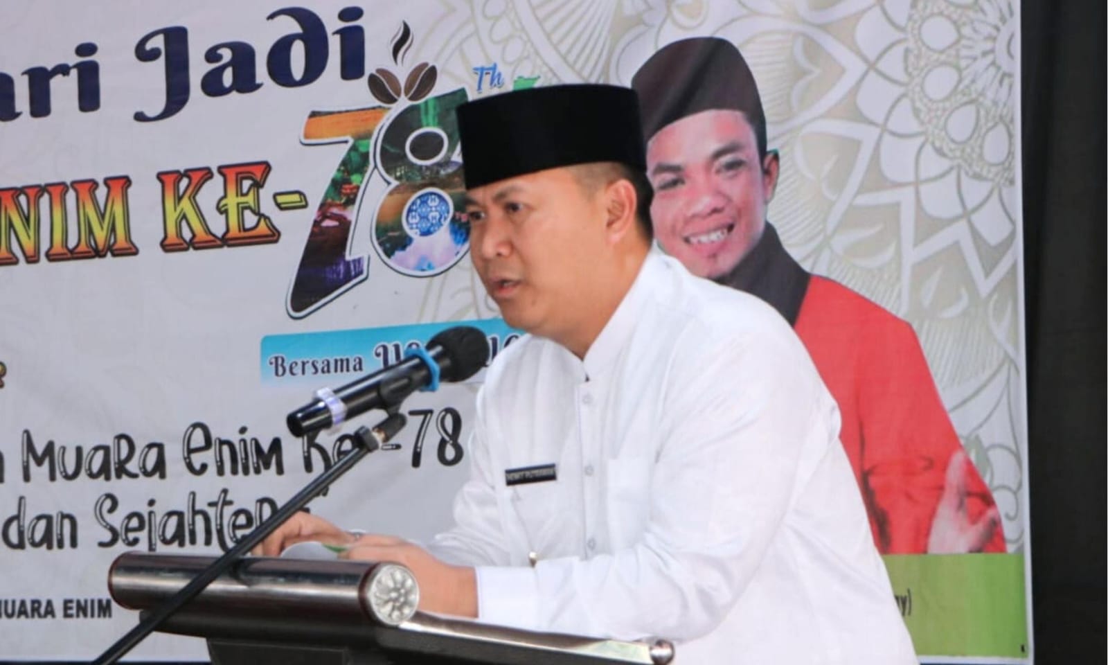 KORDANEWS -Pemerintah Kabupaten Muara Enim menggelar Tabligh Akbar memperingati Hari Jadi Kabupaten Muara Enim Ke-78 Tahun 2024 yang dihadiri langsung oleh Pj. Bupati Muara Enim, H. Henky Putrawan, S.Pt., M.Si., M.M., di Halaman Kantor Bupati Muara Enim, Rabu (13/11). Adapun Tabligh Akbar diisi dengan tausiyah dari Ustadz Anugerah Cahyadi (Ustadz Ucay) Finalis DA’I AKSI Indosiar tersebut, Pj. Bupati mengajak seluruh elemen lapisan masyarakat Bumi Serasan Sekundang untuk mendoakan Kabupaten Muara Enim makin maju dan sejahtera.