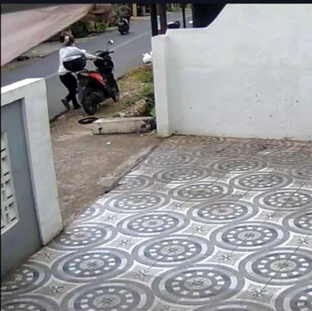 Dari rekaman CCTV sepeda motor jenis matic yang di penuhi peralatan untuk memasang kabel jaringan internet di tinggal pemiliknya saat bertugas, namun lupa mencabut kunci kontak sepeda motor.