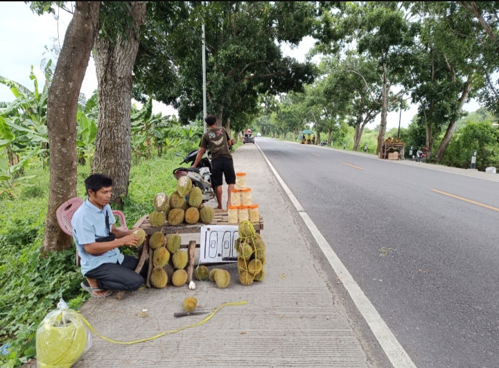 Salah satu pedagang duren, Sudar mengatakan, ia setiap hari berjualan duren di pinggir Jalan Lintas Kayuagung ini. Tak hanya dirinya yang berjualan di Jalan Lintas tersebut, tetapi melainkan dengan pedagang duren musiman lainnya.