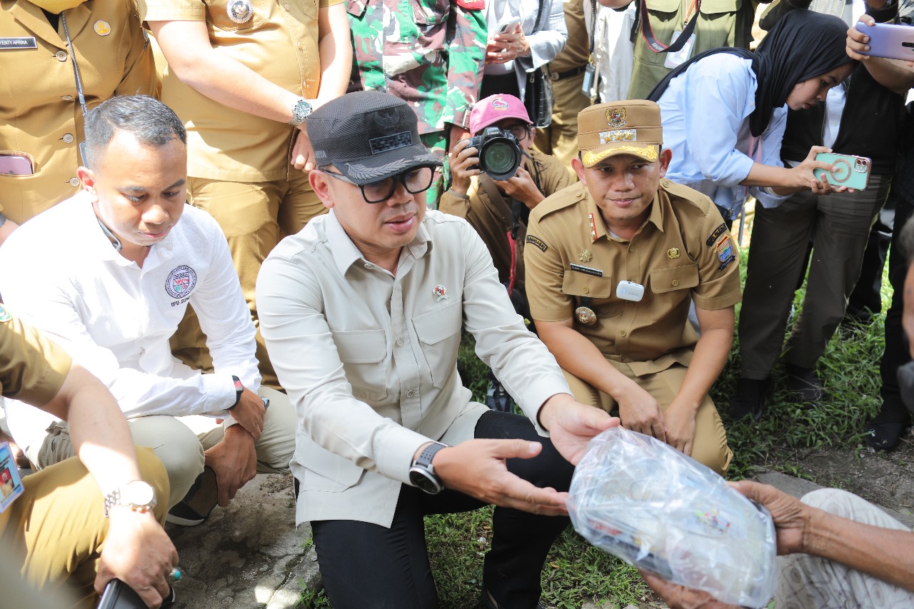 Wamendagri saat turun langsung bersama Pj Wali Kota Palembang membagikan rantang makanan kepada warga di sekitar Hotel Batiqa, Jalan A Rivai, Palembang.