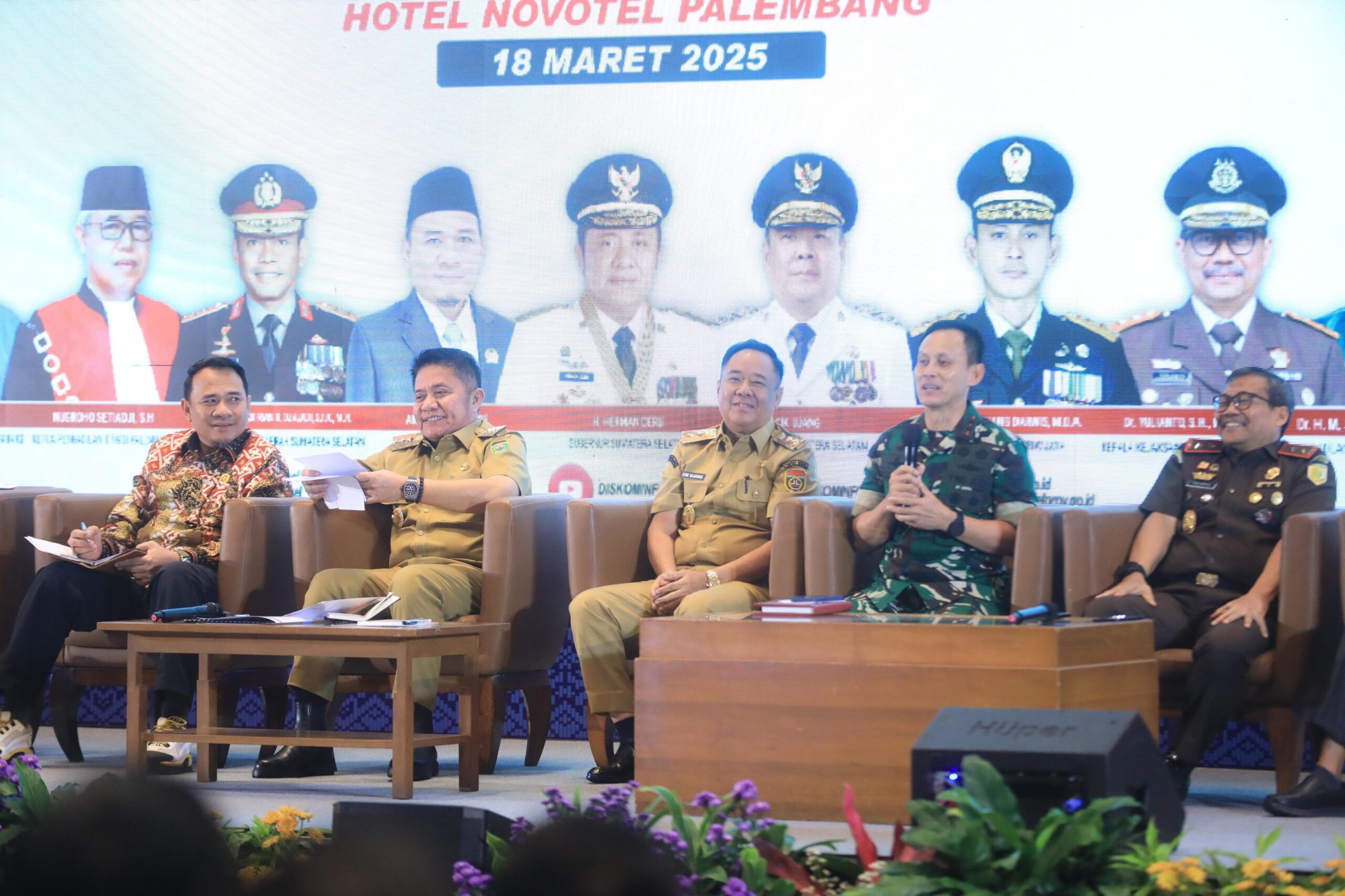 “Saya mengajak semua unsur Forkopimda dan masyarakat untuk bersama-sama bersinergi dalam mewujudkan Sumsel Maju Terus Untuk Semua,” ucap Gubernur Herman Deru saat membuka Rapat Koordinasi (Rakor) Forum Koordinasi Pimpinan Daerah (Forkopimda) Provinsi Sumsel dan Kabupaten/Kota se Sumsel bertema Sinergitas Forkopimda dalam mewujudkan Sumsel Maju Terus Untuk Semua” bertempat di Ballroom Hotel Novotel Palembang, Selasa (18/3/2025).