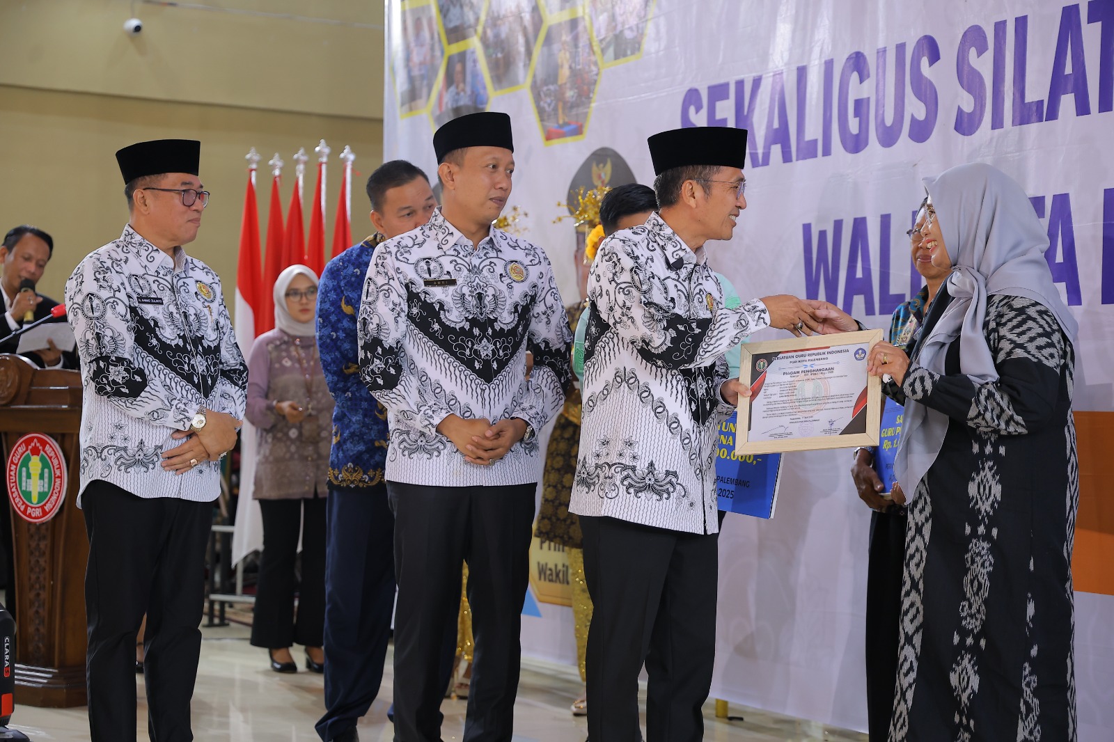 KORDANEWS-Pemkot Palembang dibawah kepemimpinan Ratu Dewa terus konsisten untuk memajukan dunia pendidikan di Kota Palembang, salah- satunya melalui wadah Persatuan Guru Republik Indonesia (PGRI), terlihat dari kegiatan silaturahmi yang sekaligus pengukuhan 150 orang pengurus dan 10 badan-badan PGRI Kota Palembang yang berlangsung di Gedung Graha KM 7, Kamis (17/4/2025).