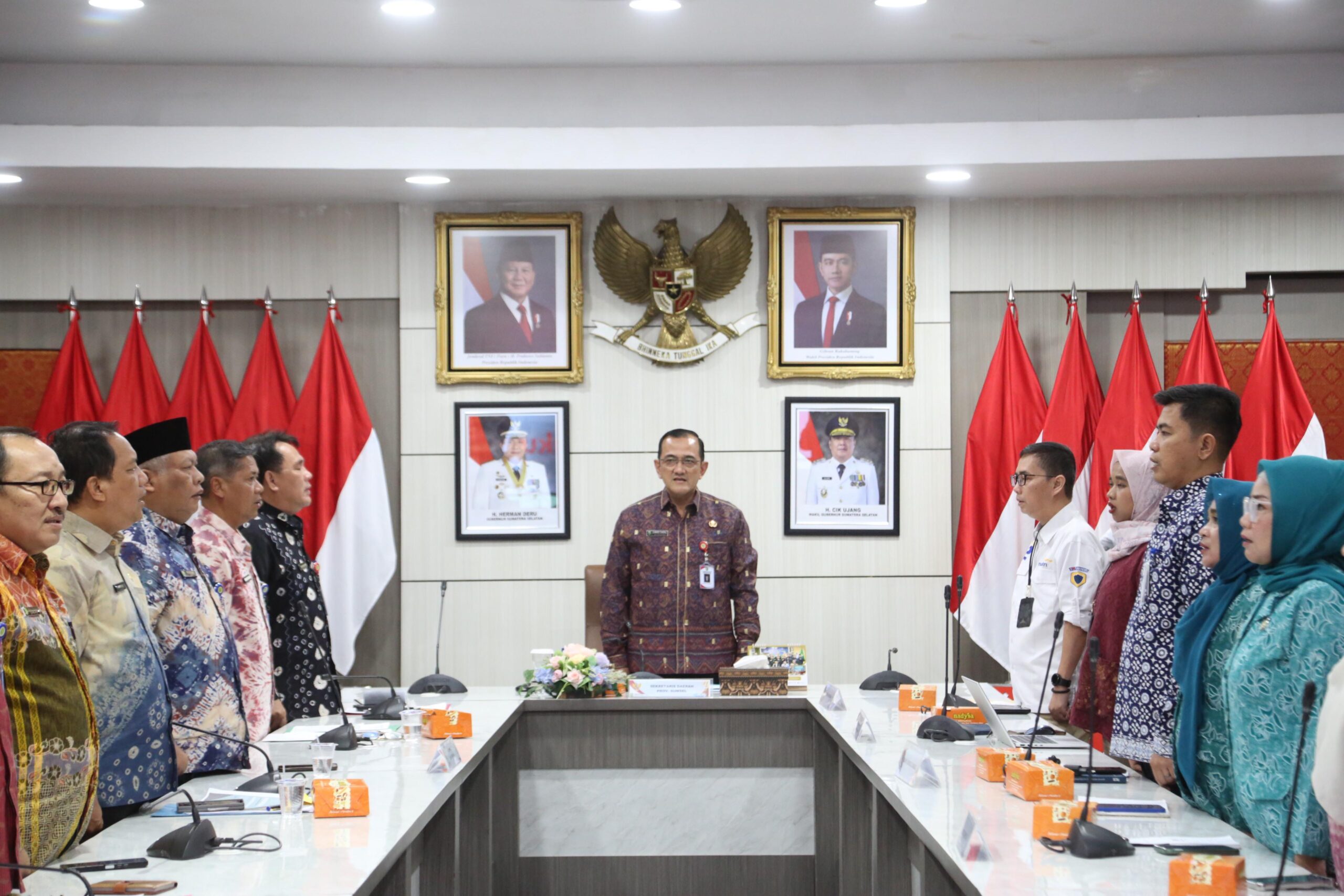 Palembang – Sekretaris Daerah (Sekda) Provinsi Sumatera Selatan (Sumsel) Drs. H. Edward Candra MM memimpin langsung rapat Koordinator Keberlanjutan Kegiatan Gerakan Sumsel Mandiri Pangan (GSMP) Tahun 2025 di Ruang Rapat Bina Praja Pemprov Sumsel, Kamis (24/4/2025) sore.