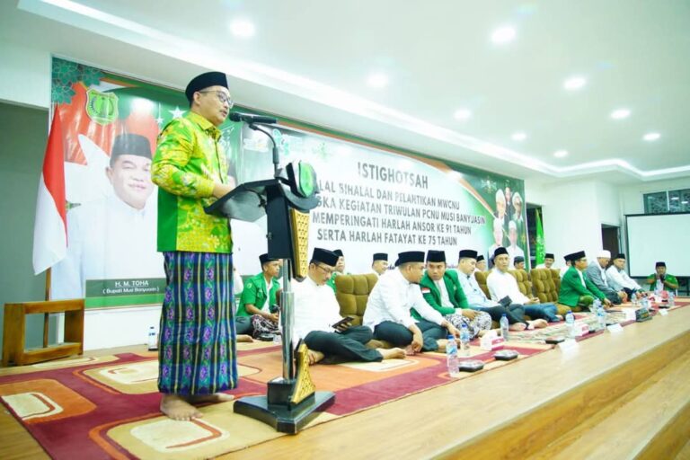 KORDANEWS – Dalam suasana yang begitu khidmat yang juga diiringi oleh lantunan shalawat, Bupati Muba H M Toha dalam hal ini diwakili langsung oleh Wakil Bupati Muba Kyai Rohman, hadir dalam acara Istighotsah Halal Bihalal dan Pelantikan Majelis Wakil Cabang Nahdlatul Ulama (MWCNU).