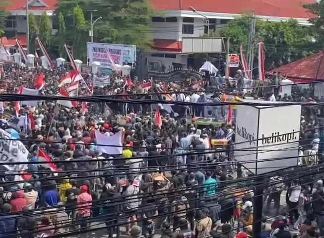 Untuk membubarkan massa, aparat terpaksa menembakkan gas air mata dan menggunakan water cannon. Kericuhan memuncak ketika sebuah mobil provos milik polisi dibakar oleh massa, menambah ketegangan di lokasi.