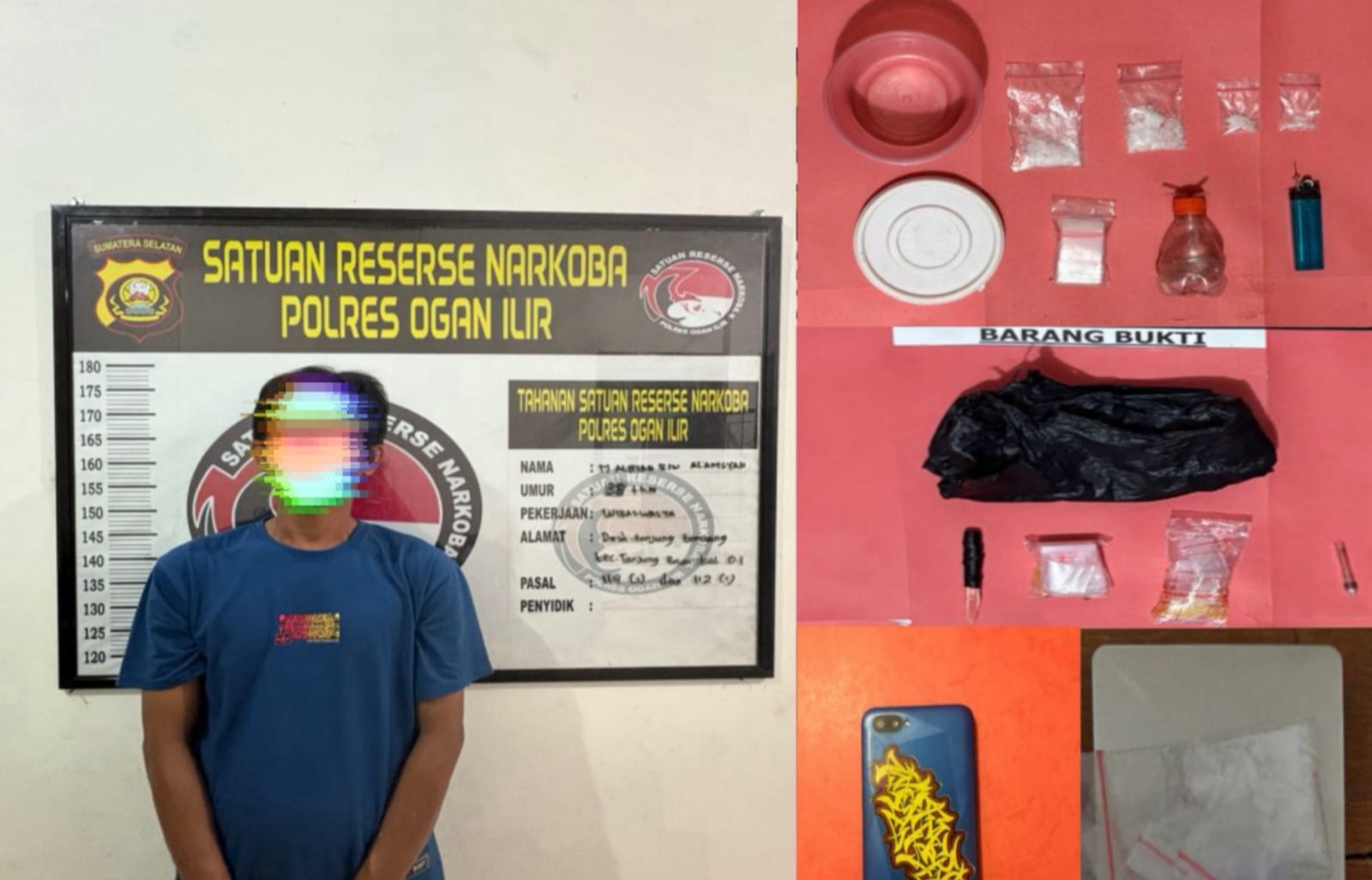 Saat ini, tersangka telah diamankan di Mapolres Ogan Ilir untuk menjalani proses hukum lebih lanjut. Polisi juga telah melakukan pemeriksaan urine, memeriksa saksi-saksi, serta melengkapi administrasi penyidikan. Barang bukti dan sampel urine tersangka akan dikirim ke laboratorium forensik.