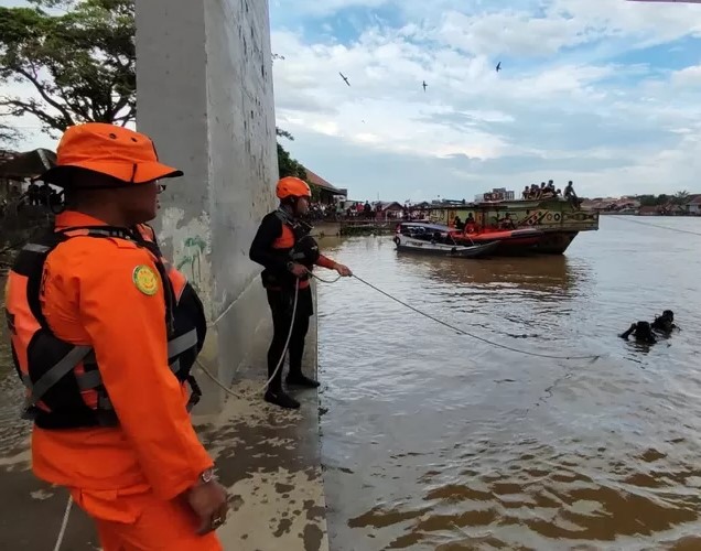 Pencarian sudah dilakukan sejak Senin sore oleh Tim SAR gabungan yang terdiri dari Basarnas Kantor SAR Palembang, TNI AL, Polair Polda Sumsel, Damkar Palembang, PMI, serta warga sekitar. Upaya pencarian dilakukan dengan metode penyisiran permukaan sungai dan penyelaman di sekitar lokasi kejadian. Namun hingga berita ini diturunkan, kedua korban belum ditemukan.