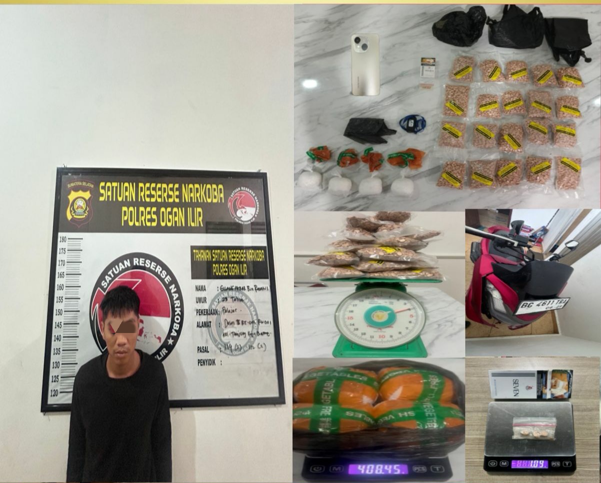 KORDANEWS – Satuan Reserse Narkoba Polres Ogan Ilir kembali mencatatkan pengungkapan besar dalam pemberantasan narkotika. Seorang pemuda berinisial GA (23) ditangkap bersama barang bukti ribuan pil ekstasi dan ratusan gram sabu dalam operasi di Jalan Lintas Sumatera, Kelurahan Timbangan, Kecamatan Indralaya Utara, Kamis sore, 11 September 2025.