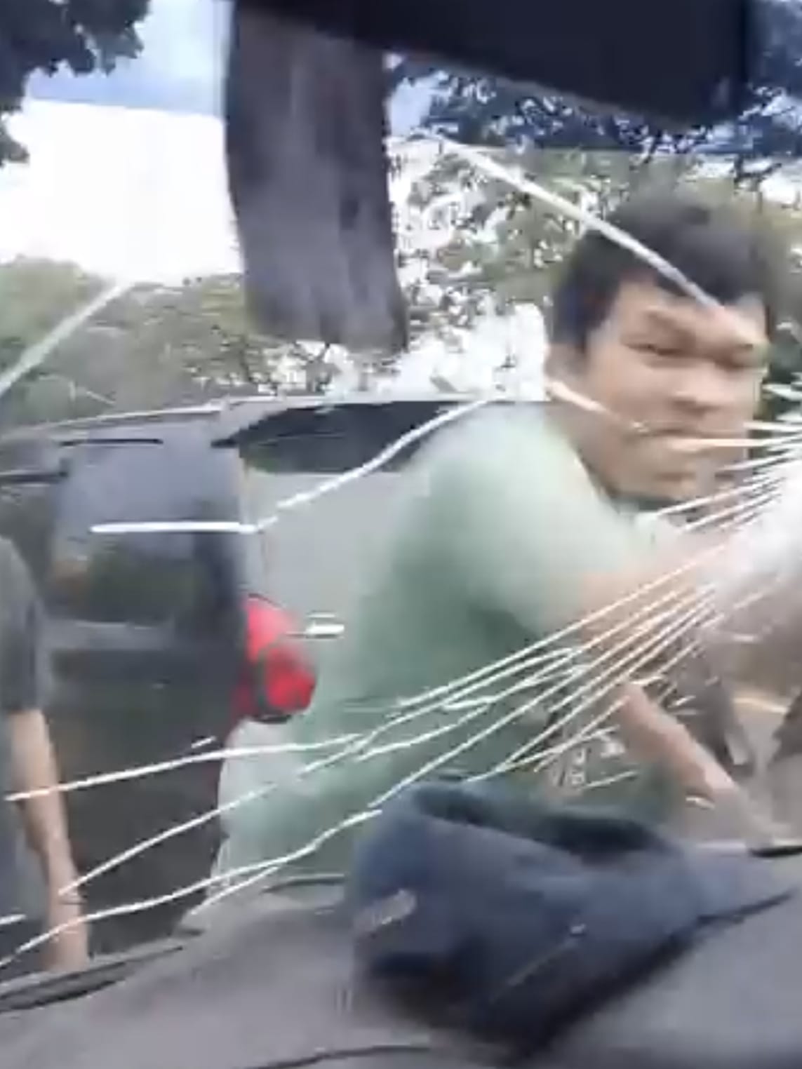Dalam rekaman video yang beredar sejak Senin siang (1/10/2025), terlihat pria tersebut turun dari mobil, meluapkan amarah, dan menghantam kaca jendela dengan tangan kosong hingga pecah. Tidak berhenti di situ, ia juga menendang pintu sebelah kiri mobil korban sampai penyo