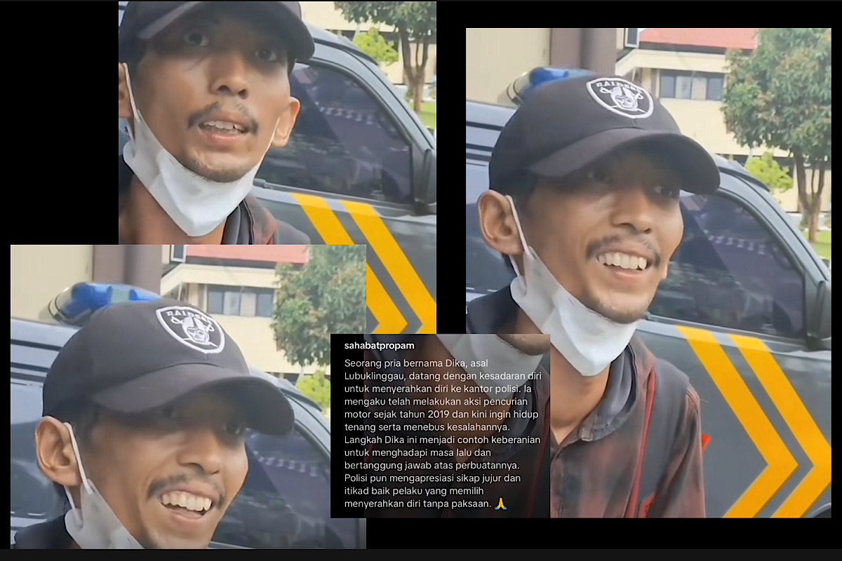 Dika mengaku sengaja datang ke kantor polisi karena ingin menyerahkan diri atas perbuatannya mencuri sepeda motor pada tahun 2019. Ketika ditanya alasan mengapa ia memilih datang sendiri, Dika menjawab dengan tenang bahwa dirinya hanya ingin hidup tenang dan bertobat.