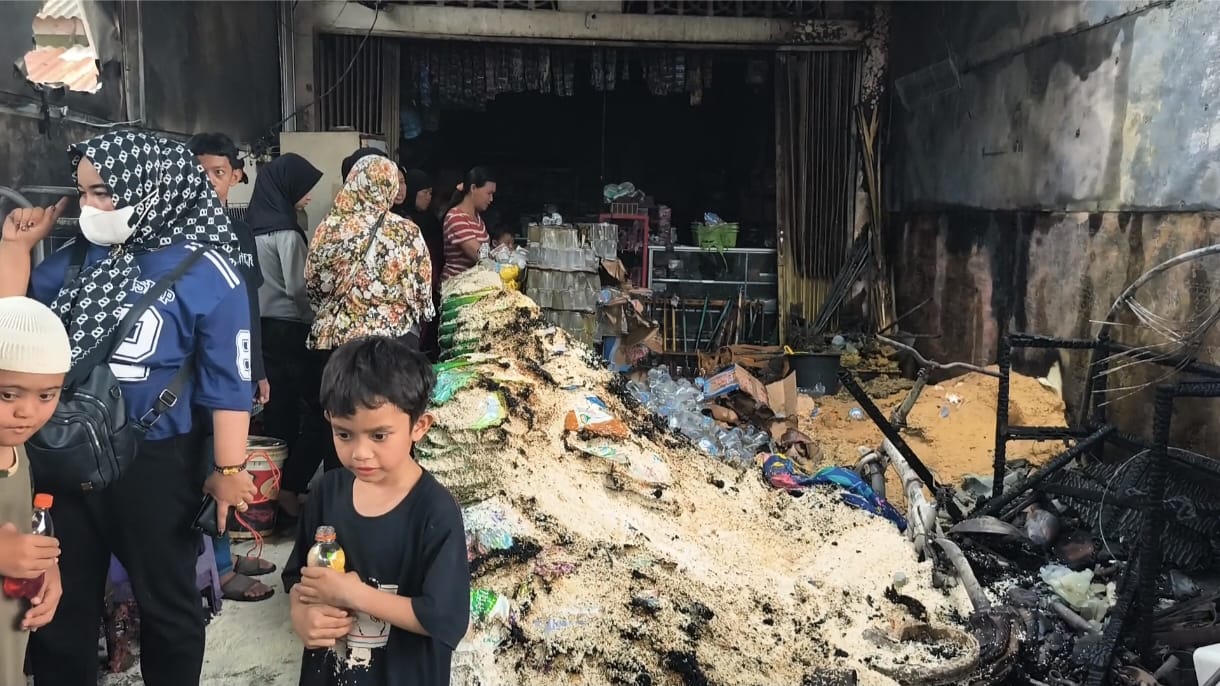 “Api awalnya muncul dari samping, katanya ada yang bakar sampah. Karena angin kencang, api cepat merambat ke warung. Motor juga tidak sempat diselamatkan sehingga ikut terbakar,” ujar Ansori.
