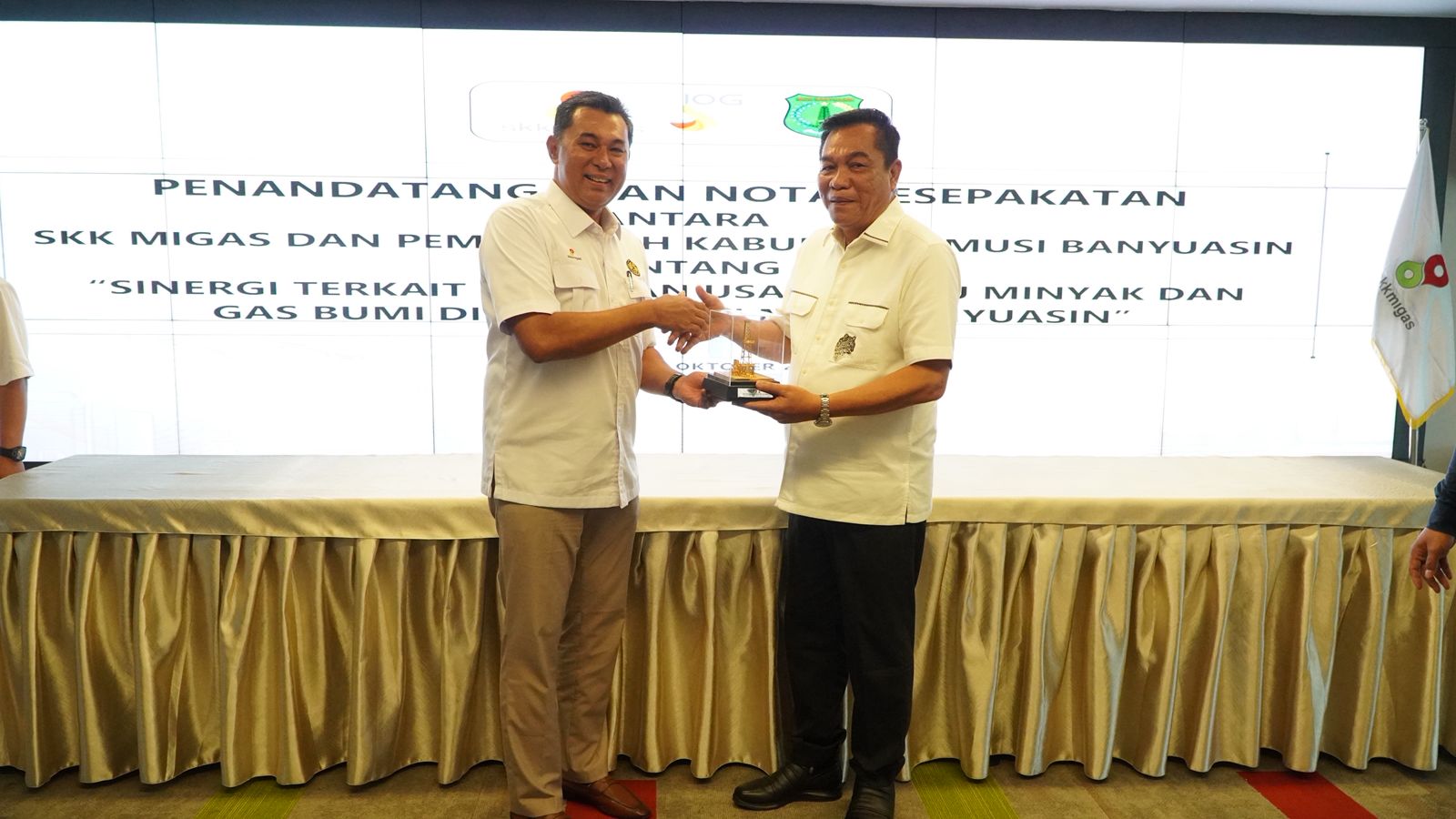 Penandatanganan dilakukan oleh Bupati Musi Banyuasin, H. M. Toha Tohet, SH dan Deputi Dukungan Bisnis SKK Migas, Eka Bayu Setta, di kantor SKK Migas, Gedung Wisma Mulia, Jakarta.