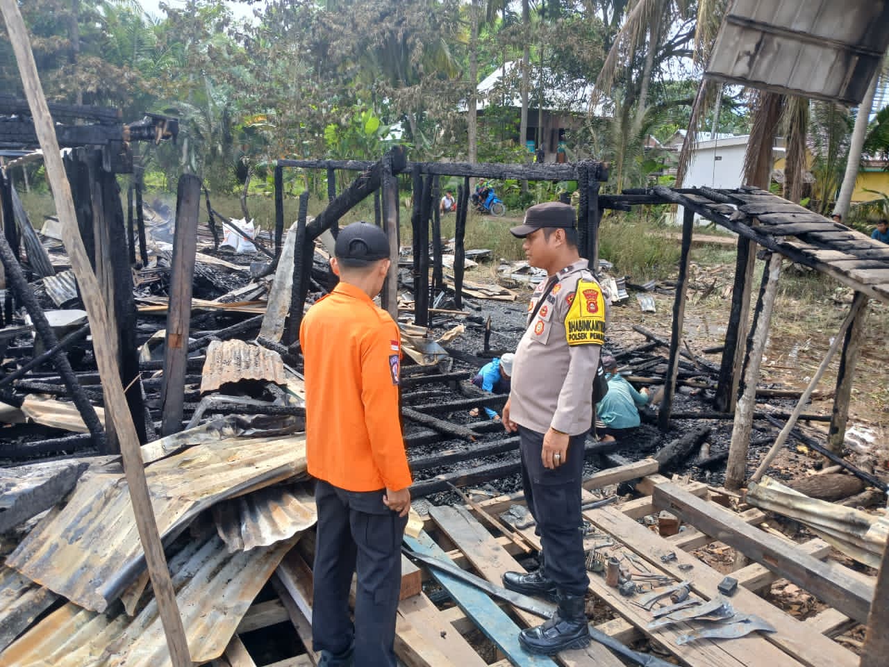 Polsek Pemulutan yang dipimpin Iptu Nugrah Angga Oktari langsung turun ke lokasi, memasang garis polisi, memeriksa saksi-saksi, dan membantu evakuasi barang-barang yang tersisa. Polisi juga menyalurkan bantuan sosial berupa beras dan kebutuhan pokok kepada korban.