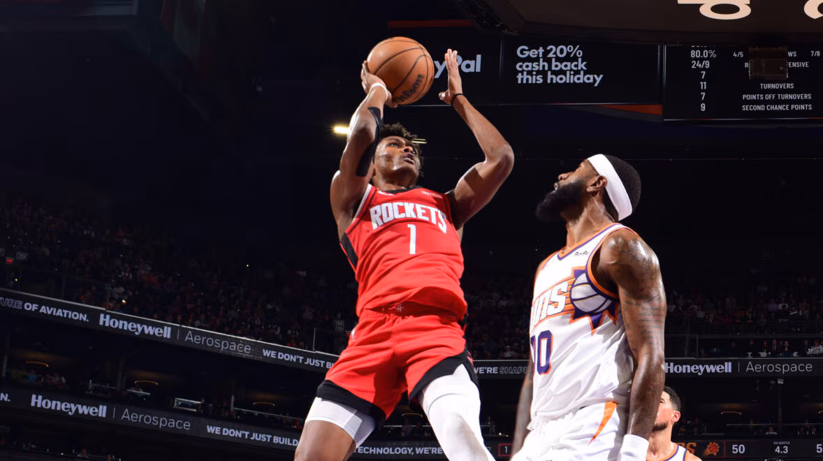 Absennya Durant justru menjadi panggung bagi talenta-talenta muda Rockets, terutama guard Amen Thompson. Pemain berusia 21 tahun itu memimpin perolehan angka dengan mencetak 28 poin—tertinggi musim ini—ditambah dengan 8 assist dan 7 rebound.