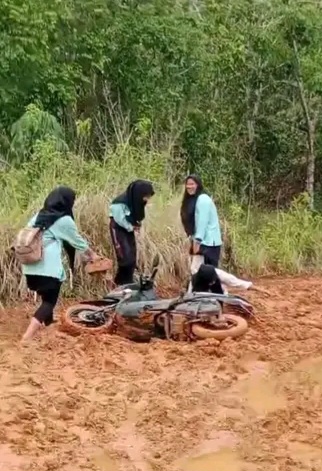 Pantauan warga menunjukkan badan jalan dipenuhi lumpur, genangan air, serta lubang-lubang dalam yang membahayakan keselamatan pengguna jalan. Pada pagi hari, para siswa harus berjibaku melewati jalan licin dengan sepeda motor, bahkan tak jarang harus mendorong kendaraan mereka agar bisa sampai ke sekolah. Kondisi ini disebut telah berlangsung bertahun-tahun tanpa perbaikan permanen.