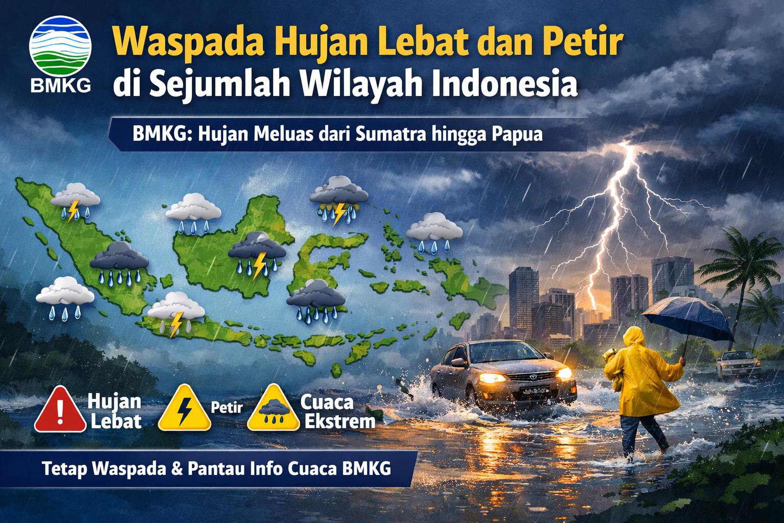 BMKG juga mengingatkan potensi hujan lebat hingga sangat lebat di sejumlah wilayah, termasuk Aceh, Bangka Belitung, Banten, Jawa, dan seluruh Kalimantan. Adapun hujan disertai petir berpeluang terjadi di Padang, Pangkal Pinang, Semarang, Surabaya, Palangkaraya, Denpasar, dan Mataram. Masyarakat diimbau tetap waspada dan rutin memantau informasi cuaca terkini melalui kanal resmi BMKG.(mb)