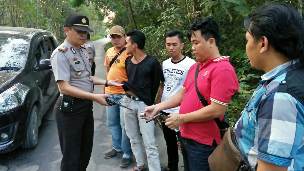 Bermula saat tersangka mengendarai sepeda motor Honda Supra Fit S warna hitam BG 3682 RM. Di TKP motor tersangka dihentikan polisi. Saat penggeledahan badan tersangka ditemukan sepucuk senpi. Tersangka yang memakai baju hitam ini pun diamankan ke Polsek Lembak untuk dimintai keterangan lebih lanjut.