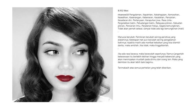 KORDANEWS – Keputusan Rina Nose untuk menanggalkan hijabnya tampak sudah bulat dan tak bisa diganggu gugat. Pengakuannya di Instagram, Kamis (10/11/2017), soal perjalanan hidup dan perubahan pikiran benar-benar berarti bahwa ia siap menghadapi ocehan publik soal keputusannya tersebut.