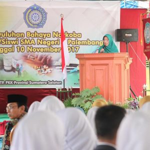 KORDANEWS——Meluasnya peredaran narkoba di Indonesia terutama dikalangan generasi muda tentunya sangat menghawatirkan, untuk memerangi hal tersebut Tim Penggerak (TP) Pemeberdayaan Kesejahteraan Keluarga (PKK) Provinsi Sumatera Selatan terus berusaha mengingatkan generasi muda agar menghindari penyalahgunaan narkoba. Salah satu usaha TP. PKK untuk memberantas penyalahgunaan narkoba di kalangan generasi muda adalah dengan melakukan penyuluhan. Jumat (10/11 ) dengan menggandeng Badan Narkotika Nasional (BNN) TP. PKK Provinsi Sumatera Selatan melakukan penyuluhan di SMAN 4 Palembang.