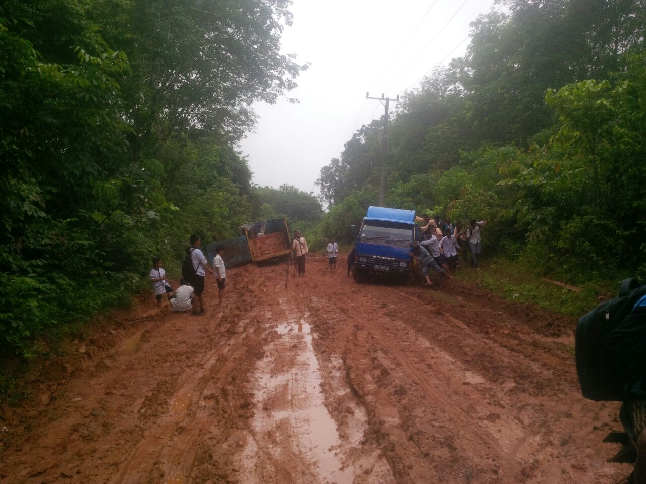 KORDANEWS – Jalan penghubung dari Desa menuju sekolah mereka kembali terputus akibat hujan deras yang mengguyur wilaya tersebut. Sehingga, sejumlah titik jalan yang belum dicor tersebut menghambat kendaraan yang biasa mengantar mereka (pelajar, red).
