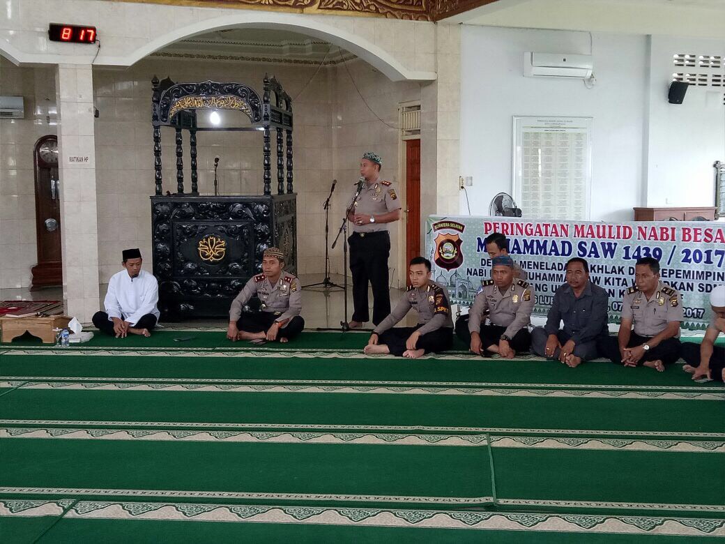 Kapolres Lubuk Linggau dalam sambutannya dari peringatan Maulid Nabi ini banyak pelajaran yang dapat kita petik dari Akhlak dan perjuangan Rasulullah SAW. Baik bagi anggota Polri maupun masyarakat yang dapat di aplikasikan dalam kehidupan sehari hari dalam melaksanakan tugas, bergaul, berbangsa dan bernegara.
