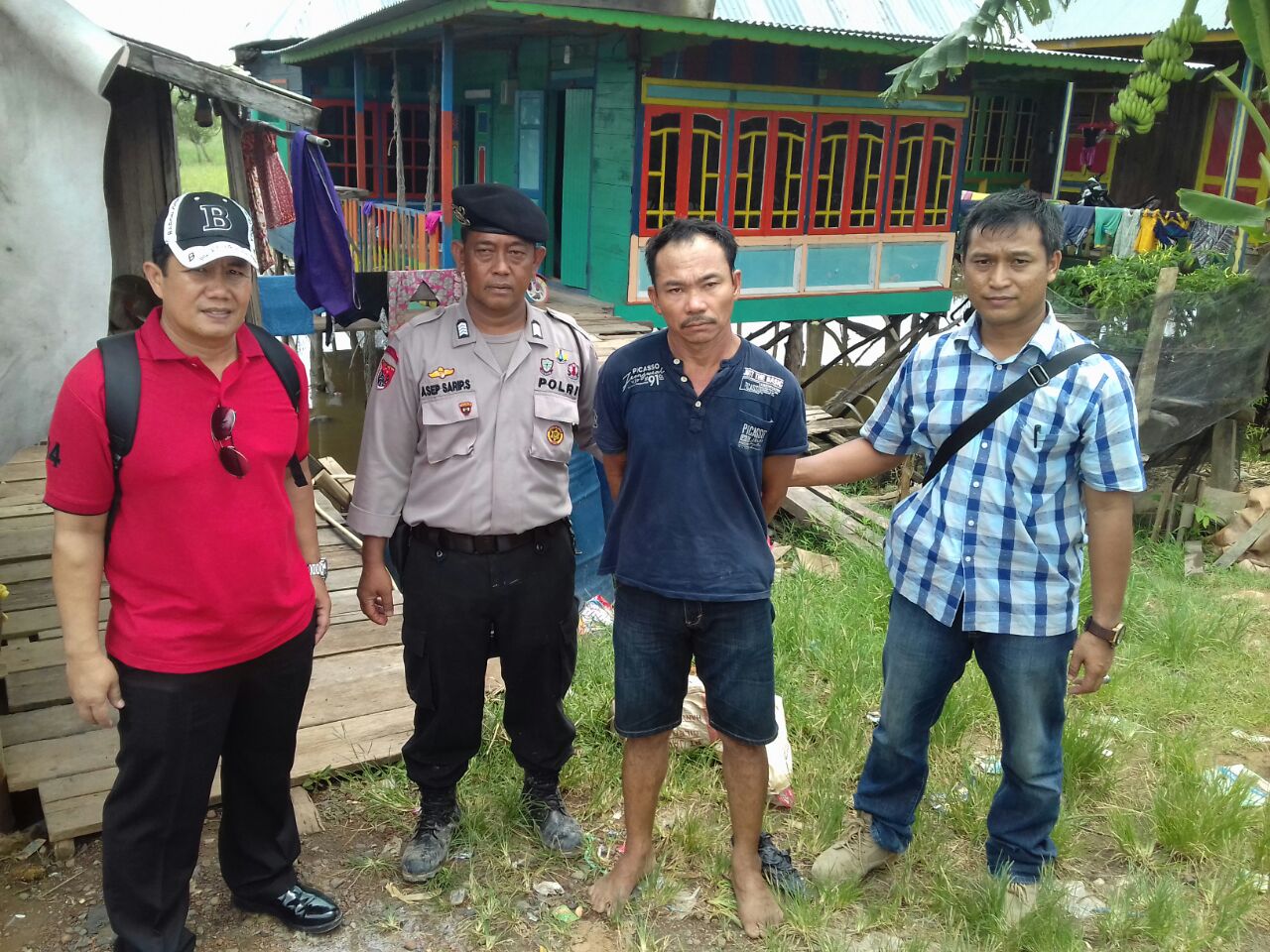 KORDANEWS – Yusuf (48), hanya bisa tertunduk lesu saat digiring tim gabungan dari Unit Reskrim Polsek Pemulutan dan anggota Badan Narkotika Nasional Kabupaten (BNNK) Ogan Ilir, Sumatera Selatan.Urine pria ini dinyatakan positif sebagai pengguna narkoba.
